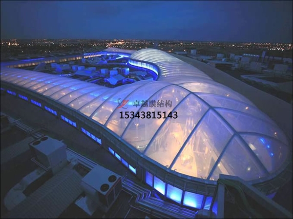 很好的先ETFE膜材在ETFE膜結(jié)構(gòu)中具有良好的耐候性能。1982年德國建成的第個ETFE膜材建筑,位于荷蘭ArnheimBurger動物園中,至今已30年多,但其材料特性未顯現(xiàn)出明顯的衰變。國內(nèi)水立方也是使用了ETFE膜材建造,也是ETFE膜結(jié)構(gòu)的一個標志性建筑。