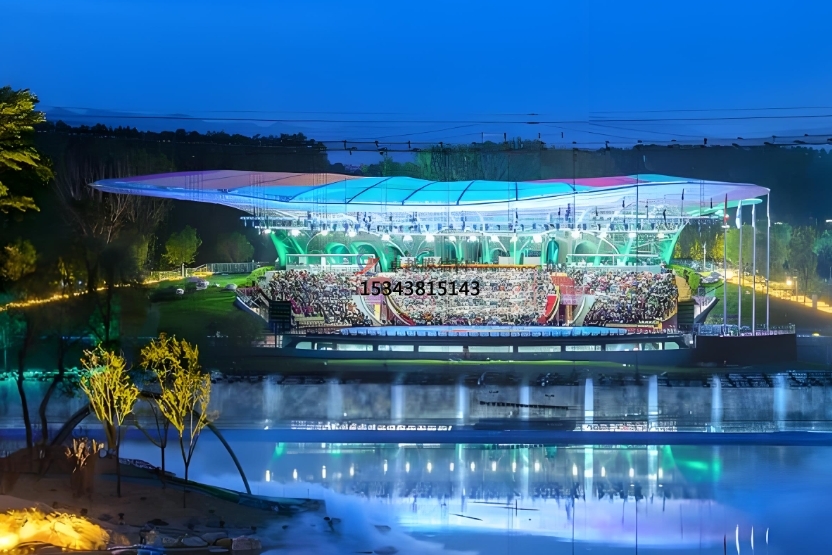 傳統(tǒng)舞臺多以方正、規(guī)則的造型示人,而膜結構舞臺則打破了這種局限。通過巧妙的設計與張拉技術,膜結構能夠塑造出如波浪般起伏、似云朵般飄逸,甚至是極具未來感的不規(guī)則造型。這些獨特的形態(tài)可以與演出主題緊密契合,無論是浪漫的音樂劇、激情的搖滾演唱會,還是充滿奇幻色彩的兒童劇,膜結構舞臺都能營造出與之相匹配的夢幻氛圍。例如,在一場以海洋為主題的演出中,膜結構舞臺可以設計成海浪翻涌的形狀,觀眾仿佛置身于波濤洶涌的海邊,沉浸式感受演出魅力。