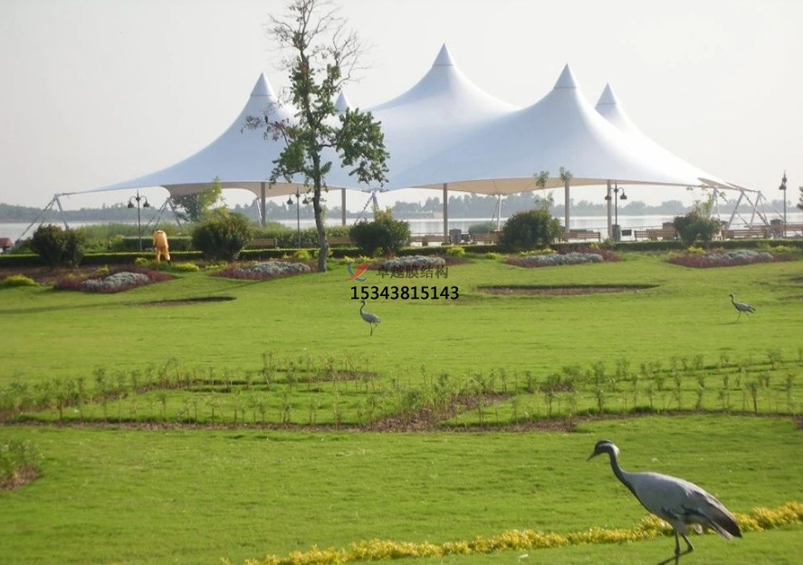 膜結構通透特質使區域既相對獨立又彼此關聯,游客游覽時感受空間轉換變化,增添景觀趣味性與層次感。同時,膜結構作為景觀視覺焦點,在空曠草坪或廣場上,獨特造型的景觀亭或雕塑吸引目光,使景觀布局更趨均衡且富有吸引力。