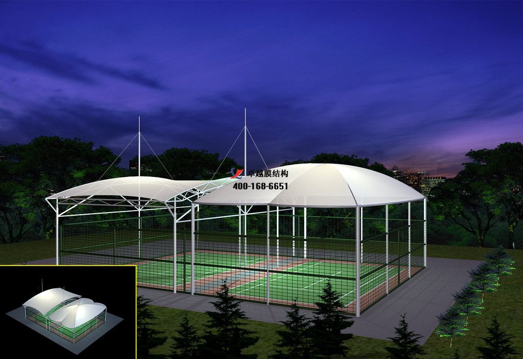 網球場膜結構選用膜材料的好處:因為膜材料自重輕,具有良好的受力特點——成為大跨度空間結構的主要形式之一。網球場膜結構建設成為現代城市規劃的重要組成部分,變的越來越重要。膜結構輕巧、別致的造型在網球場、籃球場和門球場的建設中擔當了重要角色,除了滿足防風雨、防日曬等基本功能外,并有較好的標識招攬效果,展現了人們個性化的一面。
