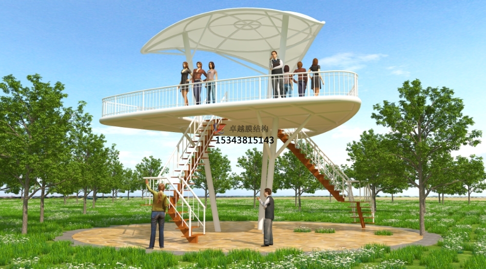 景觀棚膜結構常常被用來打造遮陽避雨的休閑場所。游客們可以在膜結構景觀棚下休憩、欣賞周邊的美景,感受大自然的氣息,同時又能免受烈日暴曬和雨水侵襲之苦。而且,這些造型各異的景觀棚本身也成為了公園和景區內一道亮麗的風景線,吸引著眾多游客駐足拍照留念。