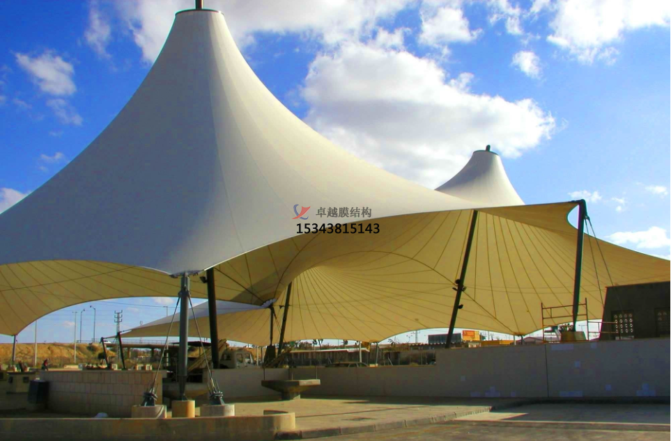 在實際應用中,PVDF膜材常常被用于各類膜結構屋頂,遮陽棚停車棚等場景。在炎熱地區采用PVDF膜布建造的停車棚不僅能有效阻擋陽光直射,降低車內溫度還能通過自身的反光特性減少熱輻射;而在寒冷地帶,這種材料則以其良好的保溫性能幫助建筑物節約能源成本。可以說PVDF膜布的應用場景幾乎涵蓋了所有需要柔性覆蓋材料的地方。